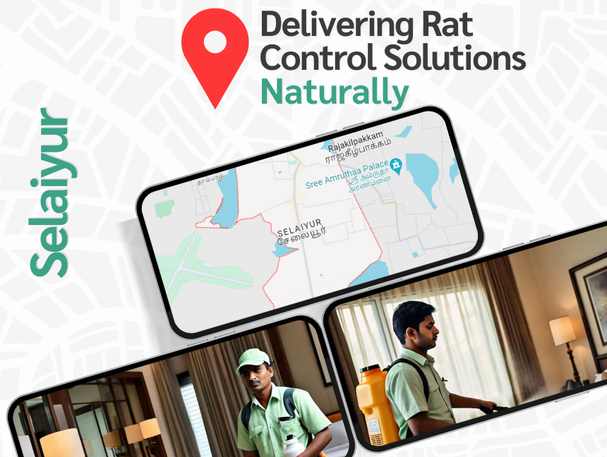 Rats are not just pesky creatures; they pose significant health risks and cause extensive damage to homes, businesses, and infrastructure. In areas like Selaiyur, rat infestations can become a major concern if left unchecked. At Pest RID Naturals LLP, we specialize in providing Health-Conscious and effective rat control services tailored specifically to the unique needs of Selaiyur residents. Our goal is simple: to help you live in a safe, hygienic environment free from rodent threats.